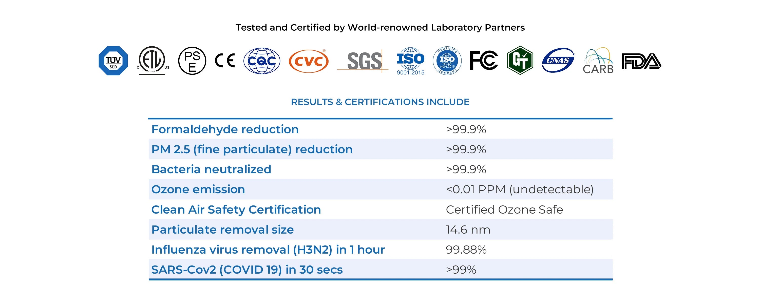 Airdog’s purification process produces a small amount of ozone, but its ozone removal filter lowers the ozone level at the air outlet to just 0.01 ppm—well below the international safety limit of 0.05 ppm. Additionally, the activated carbon filter helps eliminate odours.